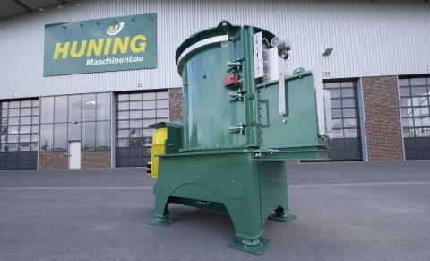 Der Prallzerkleinerer HPZ 900 dient zur Zerkleinerung von organischen Abfällen und verschleißintensiven Substraten mit hohem Mineralanteil. Er kann in Abbhängigkeit des Gesamtprozesses sowohl batchweise wie auch kontinuierlich betrieben werden. Der Zentralrotor ist vertikal angeordnet und wird über einen geräuscharmen Riementrieb angetrieben. Der Arbeitsraum ist mit austauschbaren Verschleißblechen ausgerüstet. Entsprechend der Aufgabenstellung kann der Zwischenboden (erteiltes gewerbliches Schutzrecht) eingebaut werden, der eine längere Beanspruchungszeit und somit einen höheren Materialaufschluss mit sich bringt.